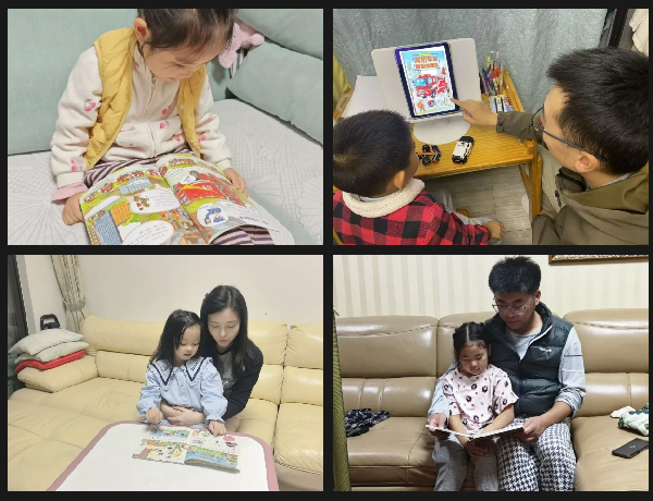 家园协同:共画成长“同心圆” 安全教育亦从园内延伸至家庭。幼儿园前期为家庭提供了消防安全绘本推荐清单,鼓励家长与孩子进行亲子共读。幼儿和爸爸妈妈们在温暖的灯光下,一个个关于勇气与智慧的故事,让安全的意识在亲子间静静流淌。