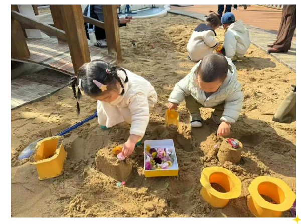 沙池边,小铲轻扬,堆沙成塔、挖沙寻宝,在沙与水的世界里感受灵动与乐趣。