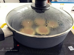 6.放入几勺清水,盖上锅盖,小火用蒸汽焖熟即可