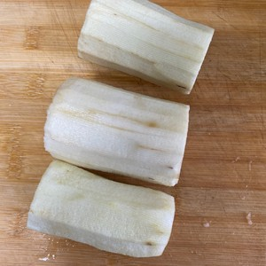1.用模具或直接用勺子,把茄子墩中间的茄子肉挖出