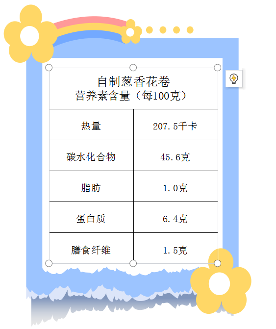 自制花卷 推荐理由:花卷是以面粉经发酵制成,主要营养素是碳水化合物,是人们补充能量的基础食物。花卷中含有酵母,除了蛋白质、碳水化合物、脂类以外,酵母还富含多种维生素、矿物质和酶类。花卷的原材料面粉里面主要的成分就是淀粉,在经过发酵、蒸煮之后,其碳水化合物更加容易被人体吸收,如果早上吃花卷的话,这些碳水化合物能够迅速为人体提供能量。 营养分析: