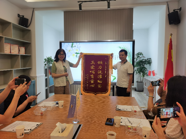家长感恩真情反馈 会议最后,各家膳委会成员就本学期幼儿园管理、课程活动、家园合作等方面提出了建议想法。大班家委会成员为学校送上锦旗,以此表达他们对幼儿园、老师工作的付出的认可与感激之情,感谢老师们三年来对孩子的悉心照料和用心培育。