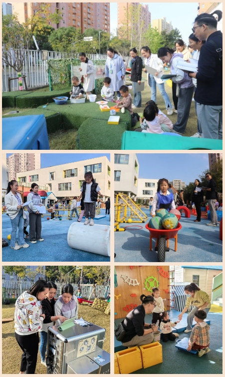 立足现场,评优巡查记录 随后,全体家委会成员前往运动活动场地,对不同年龄段幼儿的运动活动及运动过程中的保育工作进行了细致的观察和评价,以掌握保教工作的执行情况以及幼儿运动能力的发展水平。在活动过程中,家委会成员同步进行了安全巡查,以了解幼儿园课程的保障状况。 幼儿运动实施、运动保育评优