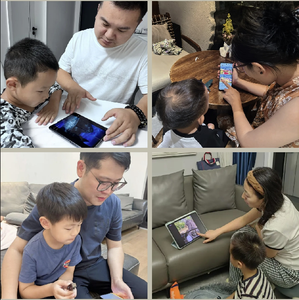在秋日暖阳下,小玩童们和爸爸妈妈拍照留念,记录下快乐时光,欢声笑语回荡在动物王国中。