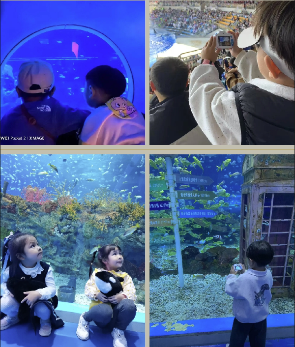 中班《上海海昌海洋公园》 中班的小玩童们兴致勃勃地来到海昌海洋公园,透过巨大的玻璃幕墙,观察鲸鲨、企鹅、海豚等海洋生物的生活场景;在海兽探秘馆,他们仔细分辨海狮和海豹的区别,在梦幻的水母馆中,孩子们被五彩斑斓的水母深深吸引,不断发出惊叹的声音。
