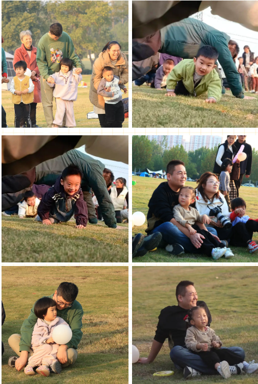 游戏时光:奔跑、欢笑与陪伴 阳光下的草坪,成了孩子们快乐的游乐场。“抓尾巴”、“运西瓜”、“钻山洞”亲子游戏环节精彩纷呈,现场加油声、欢笑声此起彼伏,简单的游戏让亲子关系更加亲密、让班级凝聚力更加牢固,也让爸爸妈妈们在游戏中学会了观察、支持与陪伴。