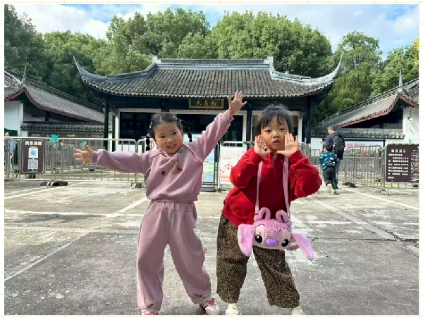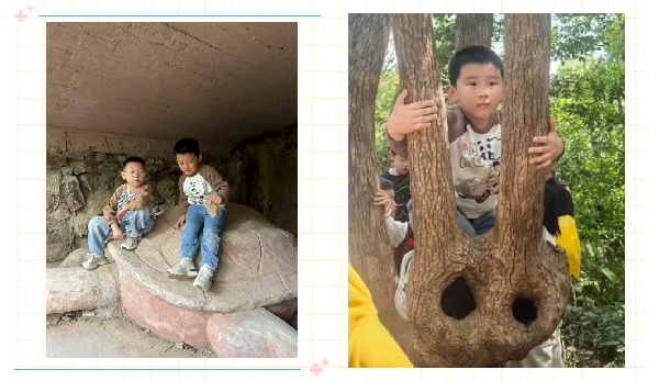 山径·寻趣 林间小径洒满斑驳的光影,小玩家们的探险悄然开启。“找乌龟山洞”“猪鼻子树留影”“宝光塔下收集果子”……家委会设计的集章任务,让登山变成了一场大自然的寻宝游戏,天马山变成了生动、有趣的课堂。